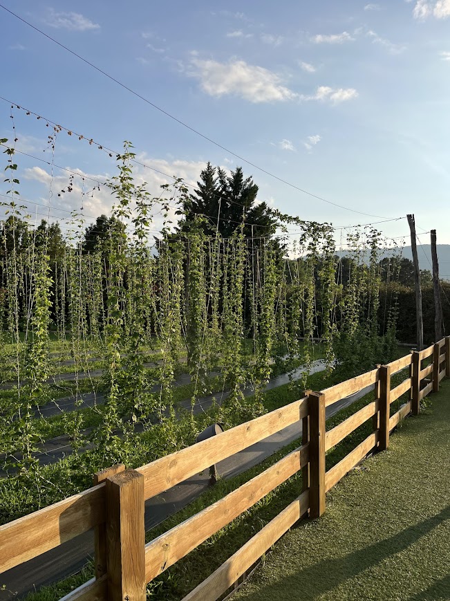 Afterwards, we took a couple of different samplings out to the large deck and yard area and discovered they grow their own hops! Their website states, they craft “real American beer inspired by thousands of years of tradition but not limited by convention.”