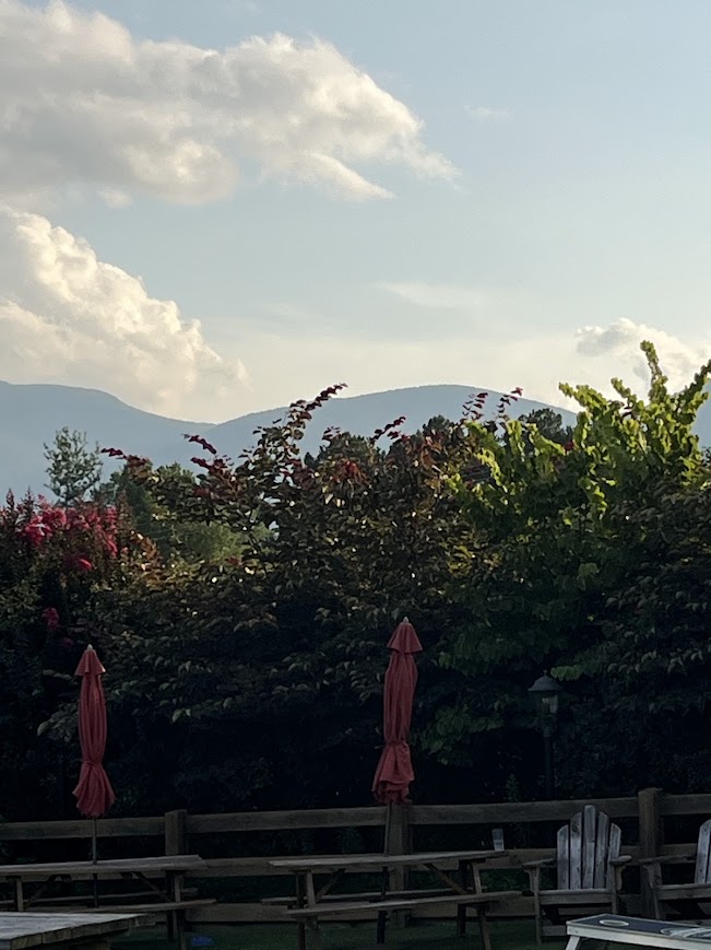 Photo by P.C. Zick – View of the mountains from the yard at Blue Mountain Brewery.